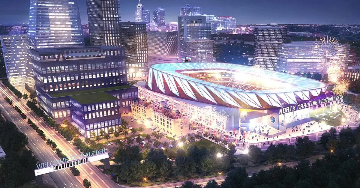 Images on visitdowntownsouth.com show a development that includes a 20,000-seat, open-air soccer stadium surrounded by street-level retail, office space, and housing. The stadium will become the home of North Carolina FC, and women’s pro team the North Carolina Courage.