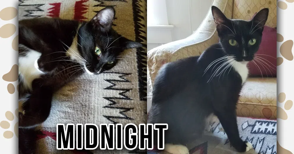 Her foster parent tells us… “Magnificent Midnight is a stunning and sleek, one-year young cat. She is very playful and loves to be where the action is. She has the shiniest, smoothest fur!”